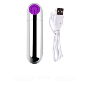 Cápsula vibratória metalizada com forma arredondada recarregável USB.